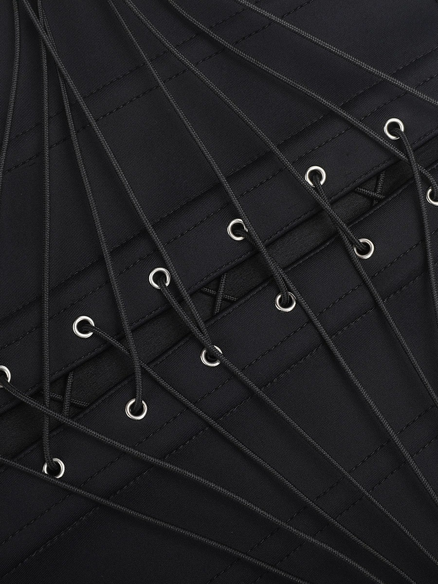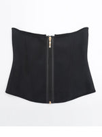 • Diseño tipo corset que realza la cintura y estiliza la figura.